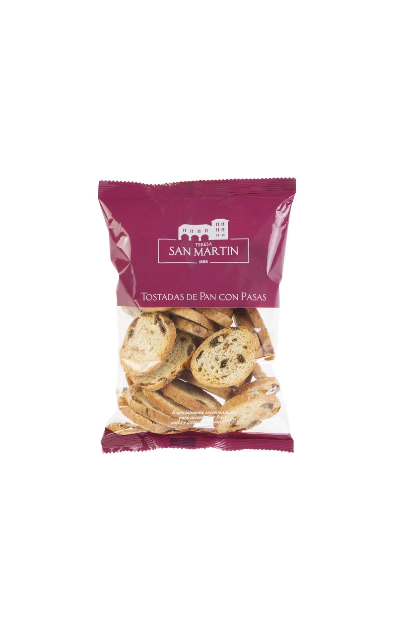 Pan de pasas con una composición 100% natural son elaborados artesanalmente mediante una selección minuciosa de ingredientes de máxima calidad obteniendo una tosta de pan muy crujiente y con un toque dulce que aporta la pasa.