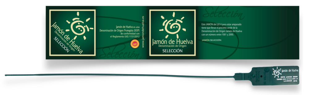 En cuanto a los colores de los precintos, vitolas y etiquetas utilizadas, la Denominación de Origen Protegida Jabugo distingue entre 3 calidades en los productos que han iniciado su curación a partir de la publicación de la Norma de Calidad del Ibérico el 13/01/2014 identificándolos de la siguiente manera: