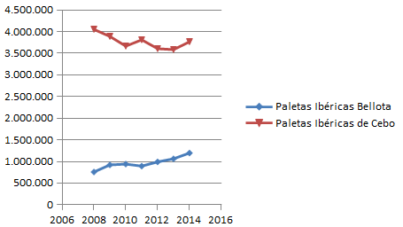 Finalmente, vamos a indicar los datos de comercialización de Paletas Ibéricas en España desde el año 2008 al 2014.