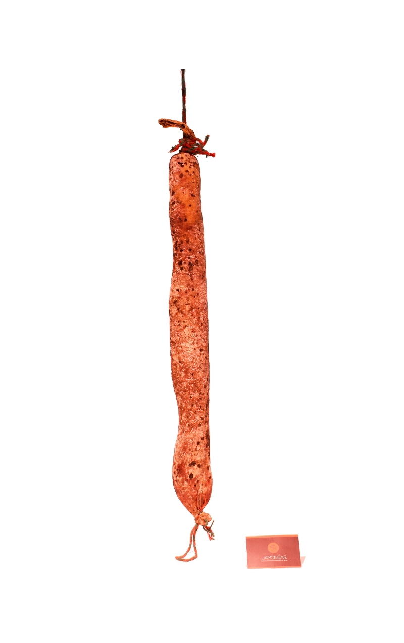Salsiccia Particolare Iberica Esca Artigianale elaborato in Guijuelo (Salamanca) in modo tradizionale, a seguito di un'attenta lavorazione artigianale, utilizzando i migliori condimenti naturali per la vostra marinata mescolando la carne macinata di maiale iberico per cui si è aggiunto il sale, il pepe e le altre spezie e additivi autorizzati, essere impastata e insaccati in budello naturale e ottenuta mediante un processo di polimerizzazione in essiccatoi naturali.